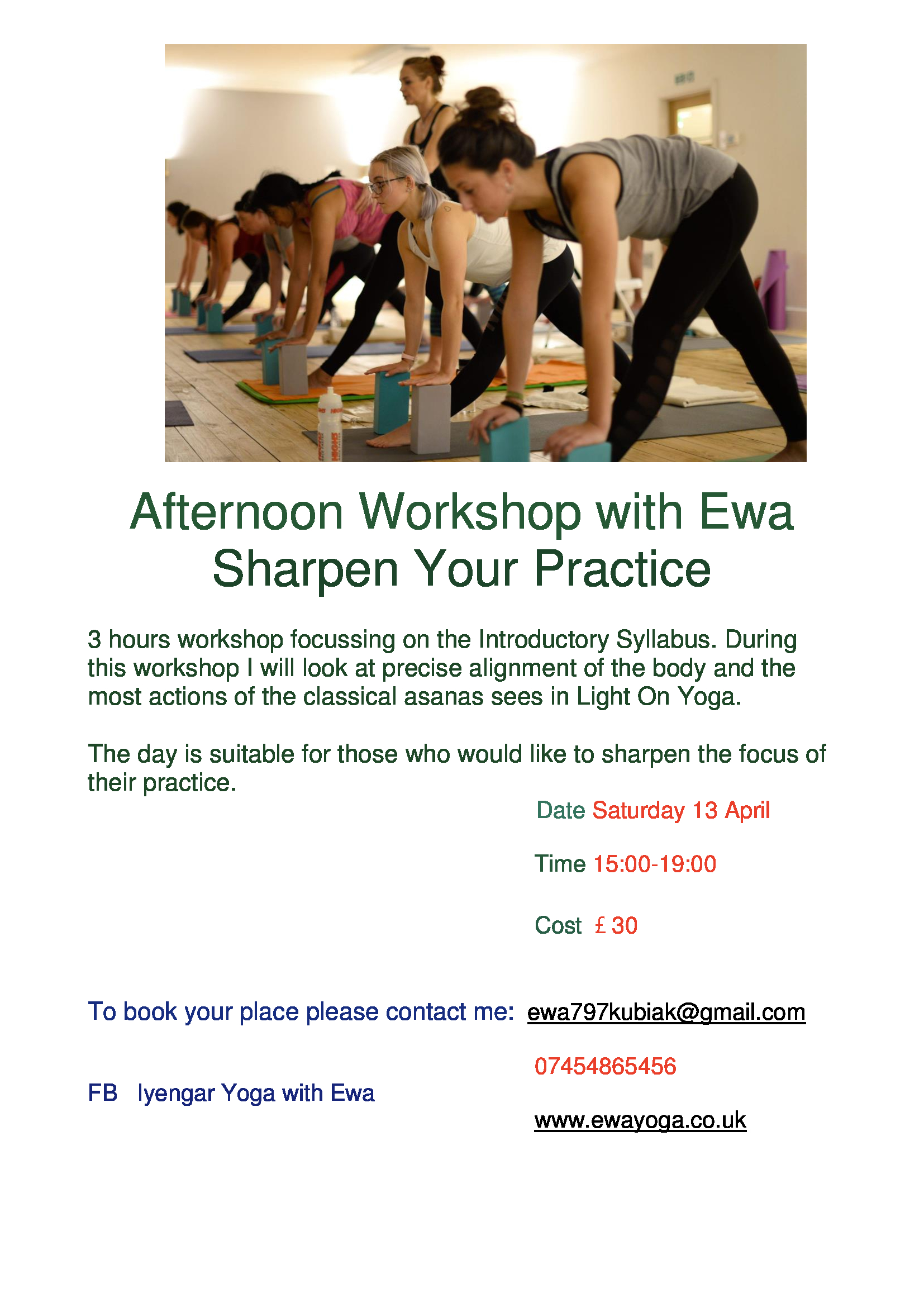 If you want to book your place please contact Ewa via email: ewa797kubiak@gmail.com or call 07454865456